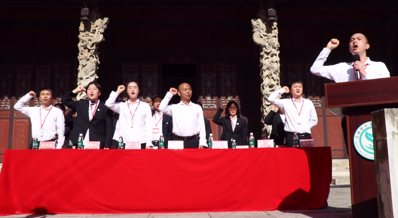 全體教師們也在蔡磊老師的領(lǐng)誓下共同宣誓:請同學(xué)們放心,我們一定:認(rèn)真輔導(dǎo),精心授課;言傳身教,以身作則;腳踏實地,刻苦鉆研;竭盡全力,奮戰(zhàn)百天;愛生如子,忠于職守;精誠團(tuán)結(jié),踏實肯干;甘于奉獻(xiàn),燃燒激情;竭盡所能,傾盡心血;嚴(yán)謹(jǐn)自學(xué),團(tuán)結(jié)拼搏;齊心協(xié)力,追求卓越;精益求精,超越自我;明確目標(biāo),共創(chuàng)輝煌;明確目標(biāo),共創(chuàng)輝煌;明確目標(biāo),共創(chuàng)輝煌。