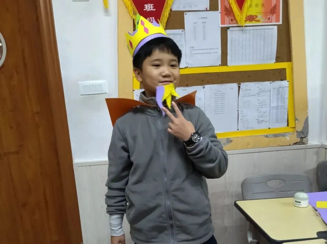 興趣果然是一臺火力十足的發(fā)動機(jī)! 接下來的組間交流精彩紛呈:有的小組配合無間,安排了專門的場務(wù)搬運(yùn)道具;有的小組道具制作非常精美,皇帝的王冠上鑲嵌著漂亮的“寶石”;有的小組大膽設(shè)計(jì),通過夸張人物的言行展現(xiàn)人物性格——皇帝拉開衣服嘚瑟地到觀眾面前讓人家瞅瞅;有的小組人物形象把握十分到位,皇帝昂首挺胸,身后跟著一個舉鏡子的仆人,大臣們哈腰駝背滿臉媚笑;有的小組運(yùn)用多種對話形式,把課文中大臣的心理活動轉(zhuǎn)化成舞臺上的獨(dú)白,讓觀眾更直觀地感受到人物形象。 臺下的觀眾也沒有閑著,大家認(rèn)真看戲,小聲議論,隨時打分。國王游行時還非常配合地高呼“好美的衣服!”等到小孩子戳破謊言,又轉(zhuǎn)而竊竊私語“啊!他本來就沒有穿衣服。”“他怎么能不穿衣服呢?”“愚蠢的皇帝”.....還有一個學(xué)生嚷了一聲:“狗皇帝!還我血汗錢!”我當(dāng)時靈光一閃,等這個組表演結(jié)束,便請這位同學(xué)說一說為什么他會發(fā)出“還我血汗錢”這樣的吶喊。