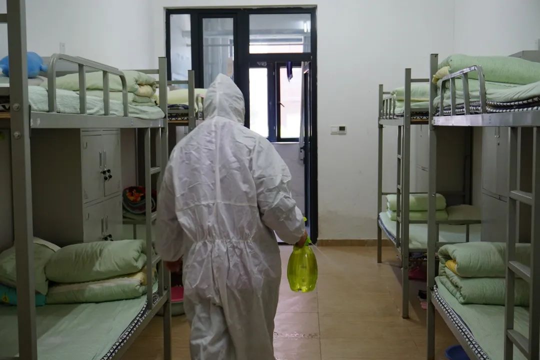 教師迅速將體溫正常的學生轉移至備用宿舍。