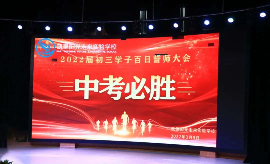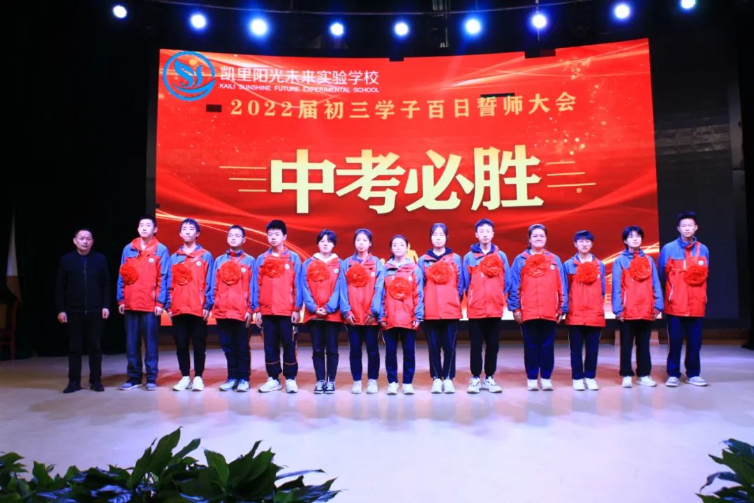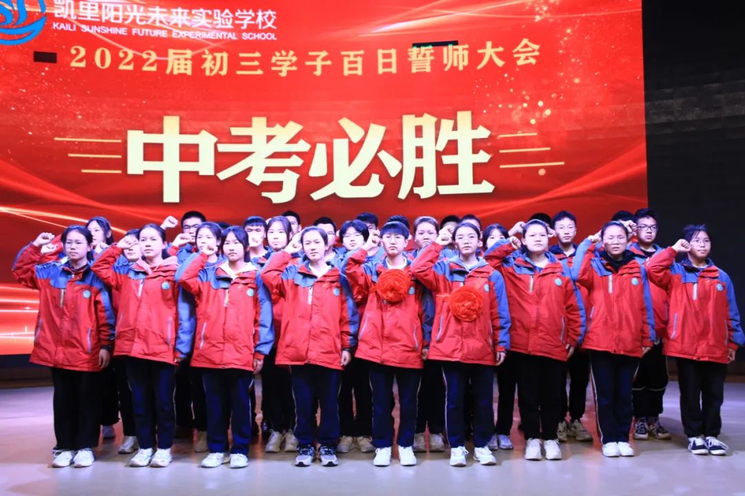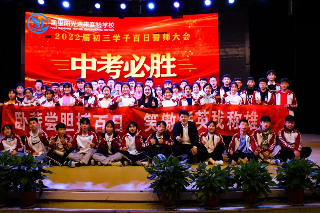 3月9日上午,凱里市陽(yáng)光未來(lái)實(shí)驗(yàn)學(xué)校2022屆中考誓師大會(huì)在學(xué)校報(bào)告廳正式舉行,初三全體師生出席大會(huì),為百天沖刺吹響號(hào)角,為決戰(zhàn)中考吶喊助威。