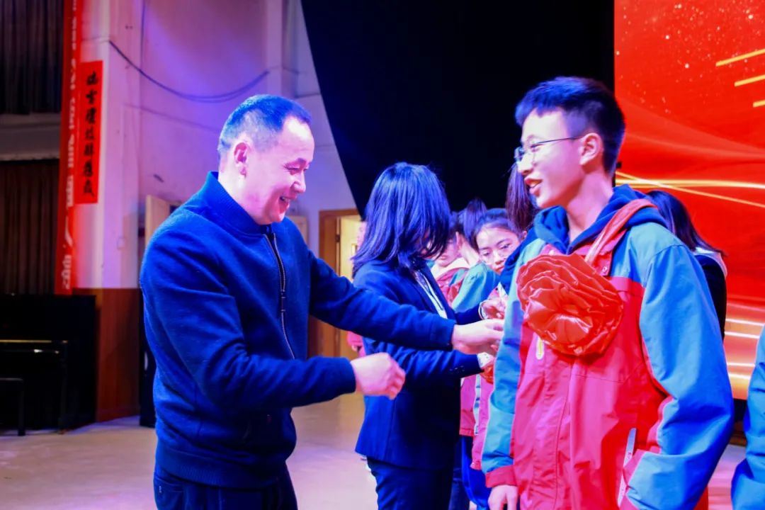 (學(xué)生代表?xiàng)钅劝l(fā)言) 初三年級(jí)組長(zhǎng)時(shí)功科做教師代表發(fā)言,以“有志者,事竟成,破釜沉舟,百二秦關(guān)終屬楚;苦心人,天不負(fù),臥薪嘗膽,三千越甲可吞吳。”的激勵(lì)語(yǔ),贏得師生們的陣陣掌聲。