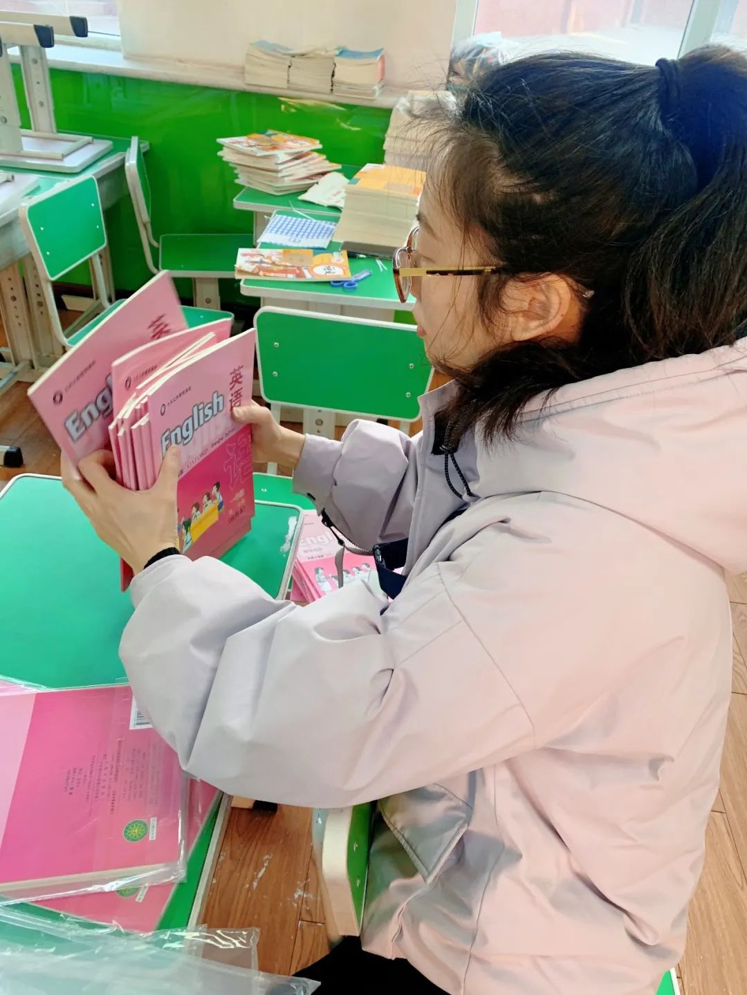 老師們?yōu)楹⒆觽冏隽俗詈蟮氖瘴玻贾冒鍒?,分發(fā)書本,還精心為孩子們準備了小驚喜!
