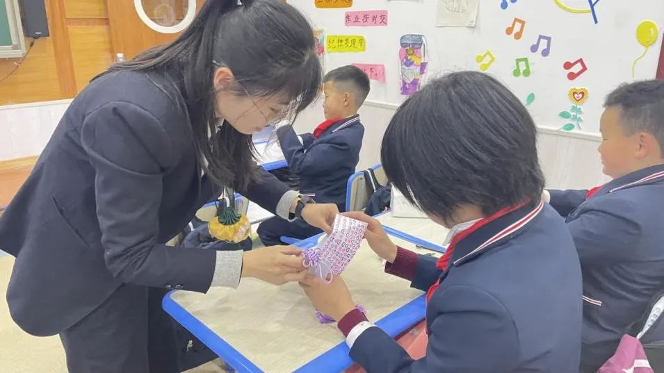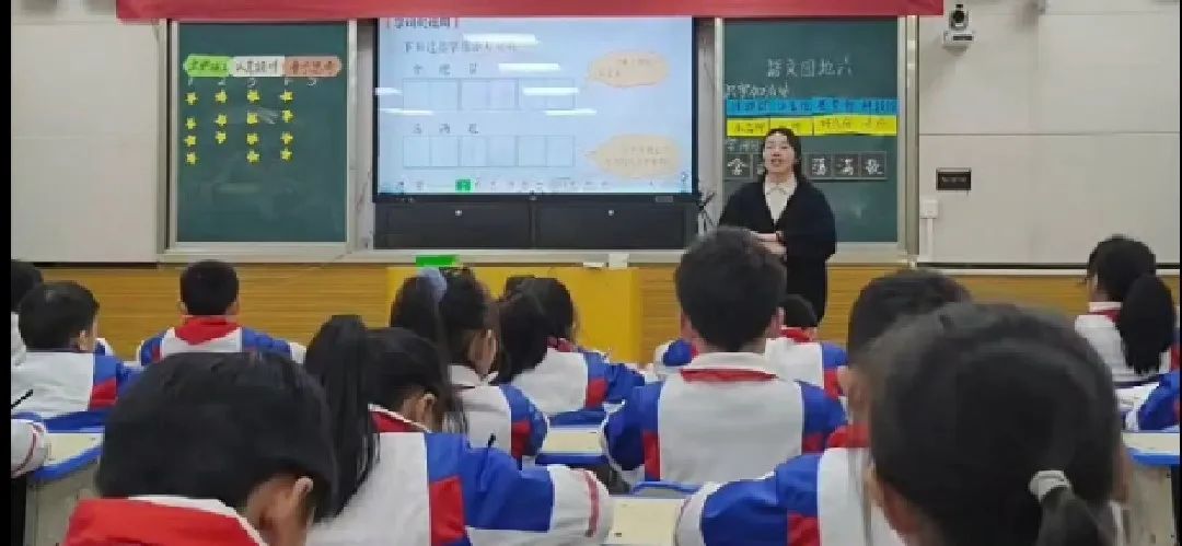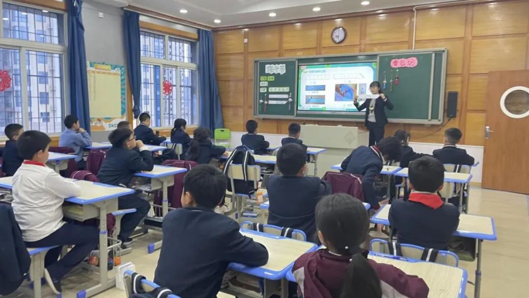 在故事的學(xué)習(xí)過程中,舒老師化身“外星人”,戴上面具,背上小包,帶著孩子們?nèi)?ldquo;闖關(guān)”。老師角色的帶入讓孩子們充分融入情景,一個(gè)個(gè)也想扮演“小外星人”,模仿著外星人的語調(diào)、重復(fù)著外星人的句子,過程中反復(fù)語用、大膽展示,充分訓(xùn)練了孩子們口頭表達(dá)能力和展示能力。教學(xué)過程中更編用朗朗上口的chant(繞口令),幫助孩子們?nèi)趸~生句的難度,強(qiáng)化詞句的運(yùn)用。通過繪本故事“外星人找教室”的探索,幫助學(xué)生認(rèn)識做事要細(xì)心的道理,并把養(yǎng)成檢查、自查的好習(xí)慣遷移到實(shí)際生活中。