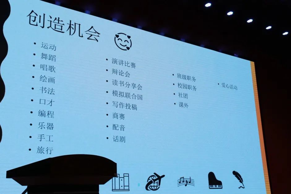 張溫煜大姐姐還講到一定要有自己熱愛的東西,體育、音樂、美術(shù)、樂器等等,其中一定要包含運(yùn)動。因?yàn)檫\(yùn)動會使我們擁有良好的體魄,健康的身體。而且不斷的要為自己的夢想創(chuàng)造機(jī)會。通過一些課外的活動,提高自己的綜合素質(zhì)和能力。并且她持續(xù)拓展自己的愛好、參加模擬聯(lián)合國的比賽活動、大學(xué)生學(xué)術(shù)辯論演講比賽活動、還有很多的公益活動等等發(fā)現(xiàn)自己更多的潛能。通過這些經(jīng)歷提升了自己。通過做愛心公益活動,幫助了很多人,體會到了自己的人生價(jià)值。她說道自己始終貫穿的三件事就是:學(xué)習(xí)、讀書、獻(xiàn)愛心。