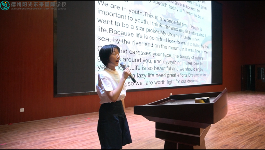 為進一步提高我校初中學(xué)生的英語聽說表達能力,在學(xué)校營造濃厚的英語學(xué)習(xí)氛圍,我校英語學(xué)科組特精心籌辦此次英語口語演講比賽,為學(xué)生搭建展示自我英語才華的舞臺,成就學(xué)生的英語夢。6月25日晚在德州陽光未來國際學(xué)校開展了以《MY DREAM 》為活動主題的第一屆初中部英語演講比賽活動。