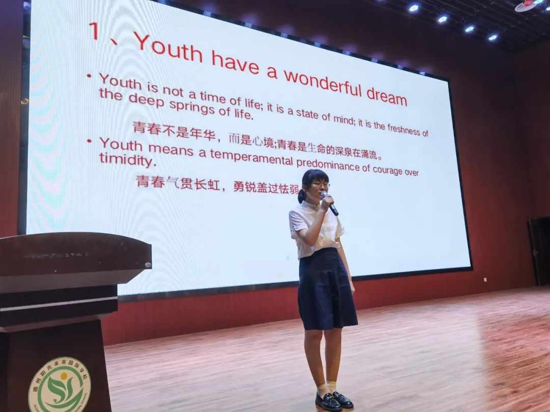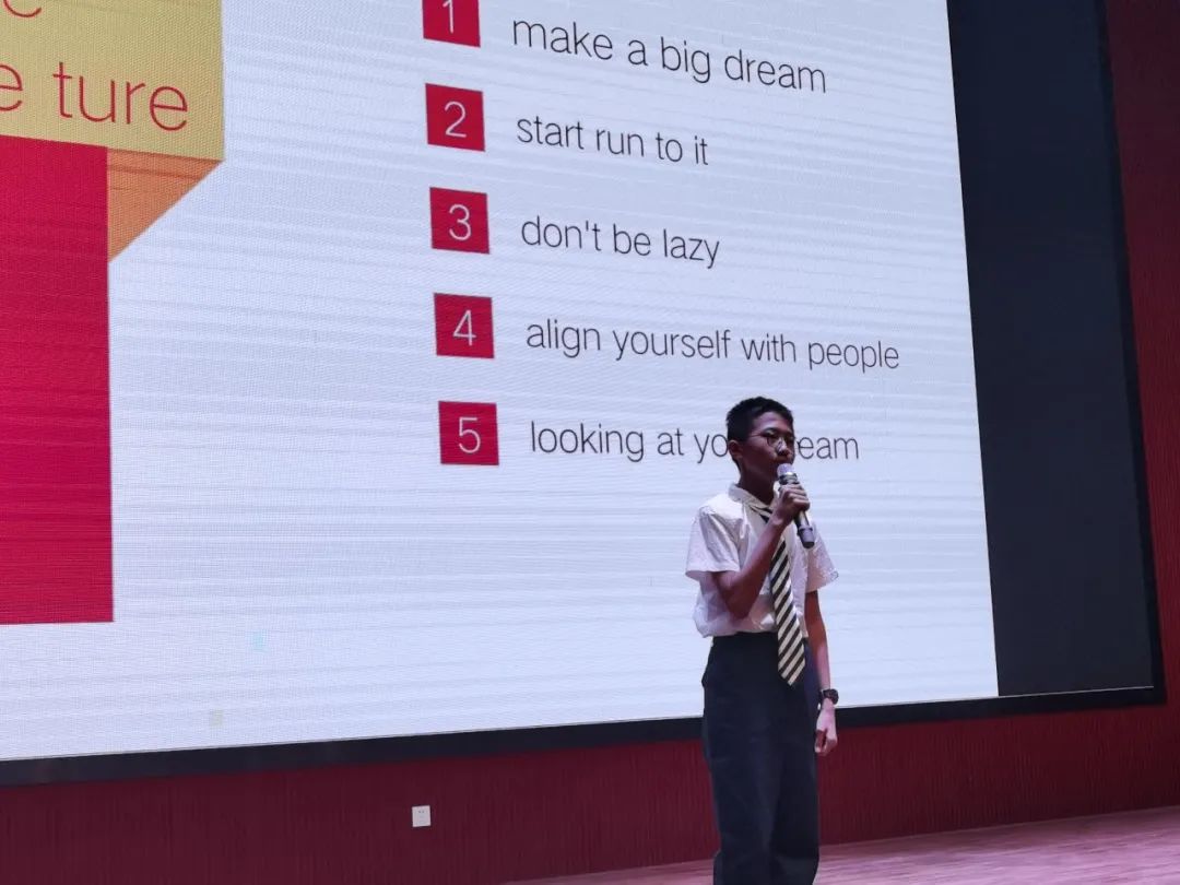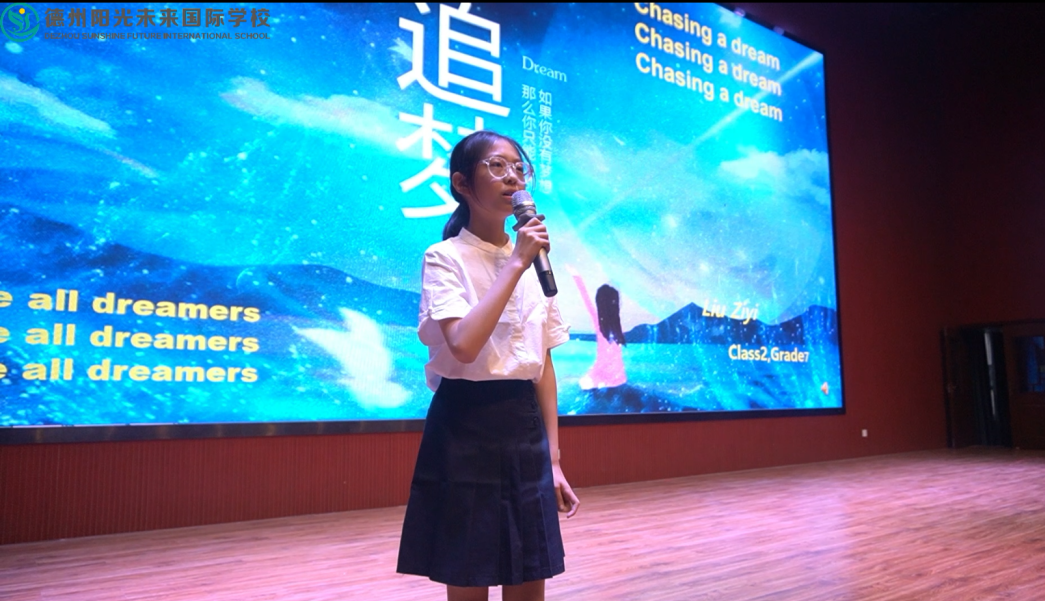 21位同學(xué)們的比賽成績也陸續(xù)公布,初中部英語組長馬然老師也對此次比賽進行了總結(jié): Thank you, all students! Thank you very much! You really did a good job! I want to say:congratulations! Imagine what could be accomplished if the dreams of China’s 1.4 billion individuals could be unleashed. Imagine what could happen. Each of you here has a power of the individual within you, you have the power of your dreams within you, and these are tremendous powers. You are young, you are educated, and you are the very best China has to offer. My young Chinese friends, I believe in your dreams, I believe that you can achieve them, and I believe you can make a difference, a big difference. All you have to do is creat the action and commit, and say: Let’s do it. Go out and do it. I am asking you. Do it for yourself, do it for China, and do it for the good of the world. Thank you very much for listening! 親愛的孩子們,非常感謝你們的精彩展示!你們做得很棒!恭喜你們! 設(shè)想一下,如果全中國14億人民都能夠放飛各自的夢想,將會取得多大的成就。設(shè)想一下美妙的前景。你們每一個人都有改變的力量,都有夢想的力量,這些力量是無窮的。你們朝氣蓬勃,你們學(xué)識豐富,你們是中國培養(yǎng)的精英。我年輕的朋友們,我相信你們的夢想,我相信你們可以夢想成真,我相信你們可以做出改變,巨大的改變。你們要做的只是為之奉獻,你們要做的就是把夢想付諸行動并全心投入,對自己說:“讓我去做吧。”去行動吧,為你們自己,為中國,為世界的利益去行動!感謝大家! 最后本次比賽初中學(xué)部校長也做了本次活動總結(jié): 老師們,親愛的同學(xué)們: 大家好!看到今晚舞臺上的精彩英語演講,我感到非常高興。我看到了陽光學(xué)子們積極向上的精神,感受到了同學(xué)們追逐夢想的勇氣和信心,更希望同學(xué)們能夠堅守初心,不懈努力,直到夢想成真! 同學(xué)們知道,英語是通往世界的通用語言,參賽的同學(xué)們大膽運用英語勇敢展示自我、描述自己的夢想和追夢的計劃,從此,也為我們走出國門獲取更多的人生體驗奠定了基礎(chǔ)。我想借此機會簡要做一下總結(jié): 首先,我認為每一次成功的比賽都源于大家對活動的重視。我們每個選手都進行了認真充分的準備,積極參與,在演講中大膽展示自我,我也曾看到有些同學(xué)最近一段時間充分利用課間、就寢前的一點點有限的時間加緊準備。機會總是會光顧有準備的人,我相信通過這次參與,這些同學(xué)對英語的學(xué)習(xí)有了更深的體會。 其次,同學(xué)們這次演講的內(nèi)容都很生動深刻,注重與生活實際結(jié)合,這是非常難得的。學(xué)以致用,才會為將來做好準備,語言更是我們不可或缺的交流工具,所以,英語要生活化,以后在生活中也要盡量地用英語進行交流,只有創(chuàng)設(shè)了語言情景,英語的魅力才會凸顯出來。我們不能只為考試而學(xué)習(xí)英語,更不能學(xué)到最后是啞巴英語。 第三,演講中,同學(xué)們?nèi)谌胝媲?,精神飽滿,聲情并茂,做到了以聲傳情。“感人心者,莫先乎情”。只有有情感的東西才能打動人,我們學(xué)習(xí)的不僅僅是知識,更是體現(xiàn)了一個人的情感、態(tài)度和價值觀,這也是學(xué)科素養(yǎng)。 最后,我想跟大家說的是,有形的比賽剛剛閉幕,無形的比賽時時都在上演。今天,能夠站到舞臺上演講的同學(xué)們,就已經(jīng)贏了!結(jié)果并不重要,重要的是敢于參與,勇于表現(xiàn),不斷超越自我的過程。這種精神本身就非常值得贊揚。 期末將至,愿同學(xué)們堅持不懈,發(fā)奮圖強。展胸中豪情,書青春夢想,取得優(yōu)異的成績回報所有愛你的人! 謝謝大家!
