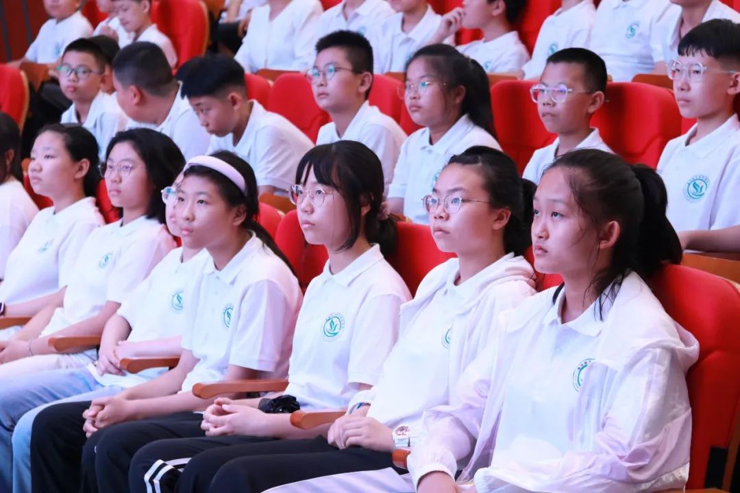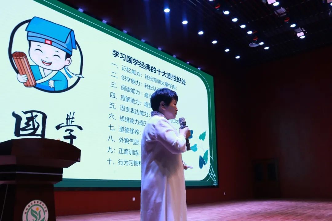 德州陽光未來國際學校以國學立校,非常注重對中國優(yōu)秀傳統(tǒng)文化的傳承和發(fā)揚。7月11日晚19點在校大報告廳舉行了一場隆重的國學經(jīng)典學習暨初中部學習《弟子規(guī)》啟動儀式。全校初中部所有學生都到會場進行國學經(jīng)典《弟子規(guī)》學習。 本次參加活動的校領(lǐng)導有:初中學部校長、初中部德育處主任李紅測、初中各年級班主任及各科教師。 本次啟動儀式主講人是初中部語文學科尹主任,為同學們深入解讀《弟子規(guī)》?,F(xiàn)場大多同學們已會熟讀背誦國學經(jīng)典《弟子規(guī)》。氣勢鏗鏘有力,聲音響徹嘹亮。 會場中尹主任給同學們分析“仁義禮智信”的含義,通過引經(jīng)據(jù)典讓同學們要與經(jīng)典同行,和圣賢為伍,學仁義禮智信,養(yǎng)浩然之氣。通過優(yōu)秀傳統(tǒng)文化浸染長成??的孩子,無形中會比同齡人多一份坦然和通透。