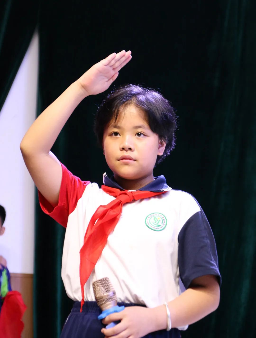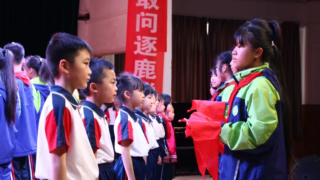 六年級老隊員代表向新隊員入隊表示熱烈歡迎,并鼓勵新隊員以后要勤奮學習,爭做優(yōu)秀少年隊員。