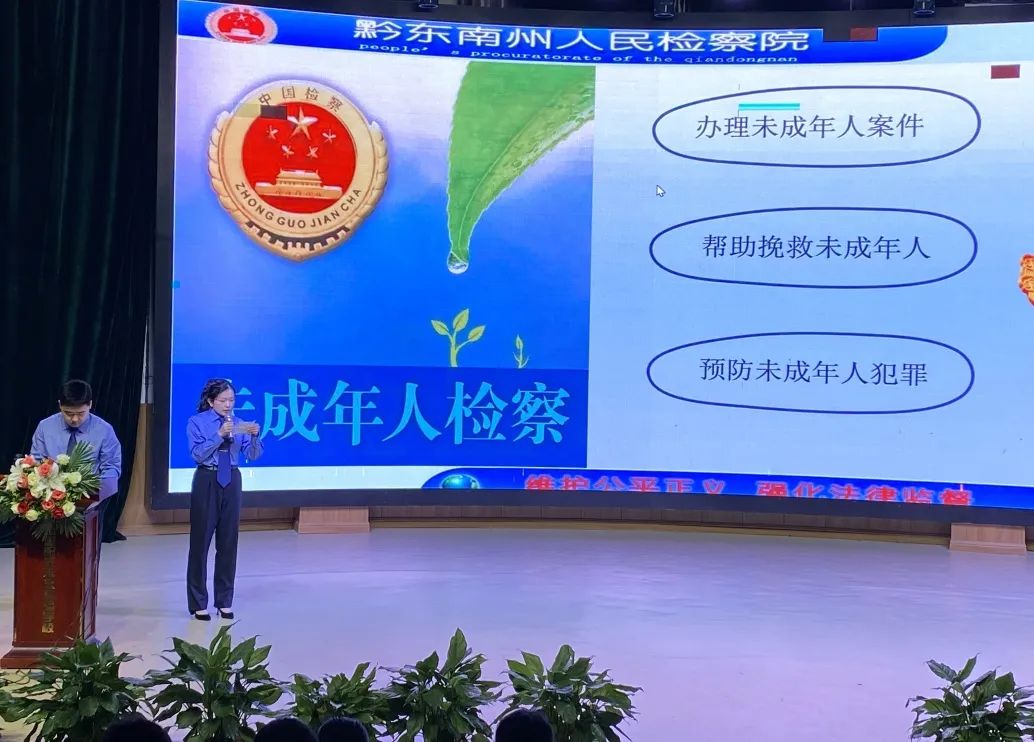 為增強(qiáng)學(xué)生的法律知識(shí),預(yù)防未成年人違法犯罪 營(yíng)造文明和諧的校園氛圍 黔東南州人民檢察院的干警們?cè)诹磺跋?lái)到陽(yáng)光校園 開(kāi)展了豐富多彩的法治進(jìn)校園活動(dòng) 并為孩子們送上了一份特別的節(jié)日祝福
