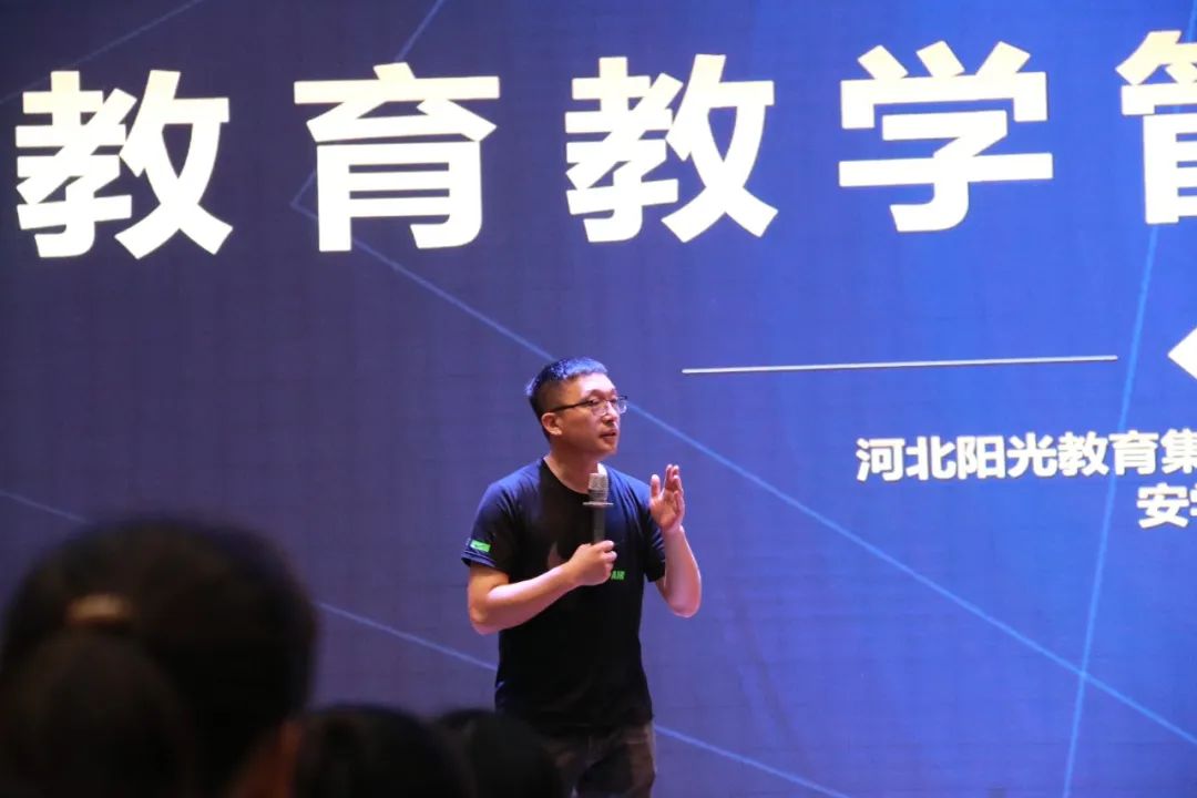 安學新校長 除了國學培訓,暑期期間安學新校長在教師業(yè)務專題培訓會中給教師們介紹了陽光文化、做陽光優(yōu)秀教師、高效課堂、以及教學教務常規(guī)等。加深了教師們對企業(yè)文化、學校文化的理解,從課程體系、育人體系、服務體系等多角度全方位的讓教師們了解企業(yè)文化以及學校文化。細致介紹了課程的特色“三三六”課堂的理念、小班教學、以及多樣化的課堂形式等等從中開拓了教師們的思維,并為教師們如何打造樂學、高效課堂指明了方向,教師們都感慨通過安學新校長的培訓受益頗深。