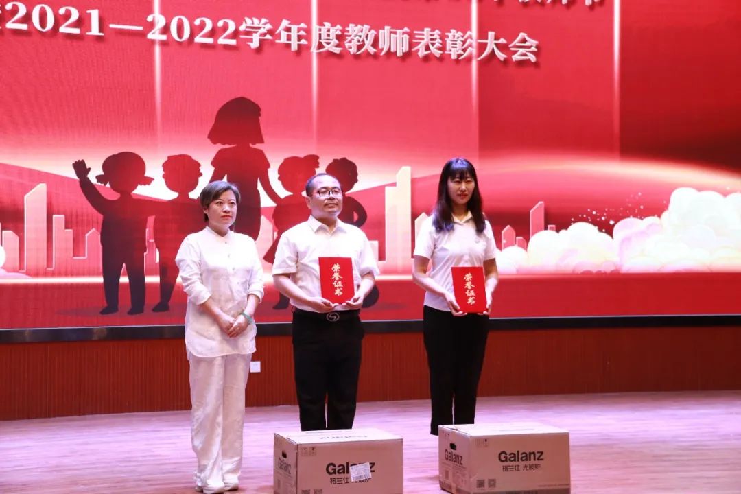 領(lǐng)導為2021--2022學年度受表彰教師頒獎 校家委會主任張欣女士為招生特殊貢獻獎教師頒發(fā)證書及獎勵