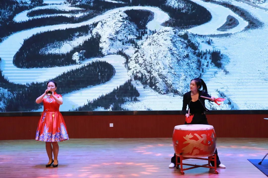 藝體中心嗩吶趙靜波老師與架子鼓張瑤老師為大家演奏的曲目為《黑土地》,此曲基調(diào)歡快流暢,舒緩部分如行云流水,高潮部分鏗鏘有力,非常有生活情趣,處處體現(xiàn)勞動人民慶祝豐收的喜悅和對美好生活的憧憬。
