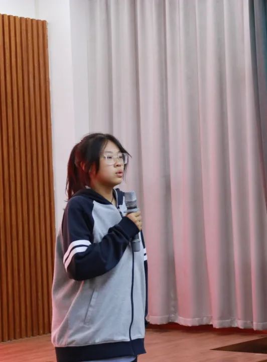 九二班學(xué)生代表候妙涵同學(xué)發(fā)言 兩位同學(xué)分享學(xué)習(xí)的方法,告訴同學(xué)們夢想的實(shí)現(xiàn)需要不斷拼搏、不斷克服道路上的困難,要增強(qiáng)自己的信心,把握好當(dāng)下的青春,才會擁有更好的人生。