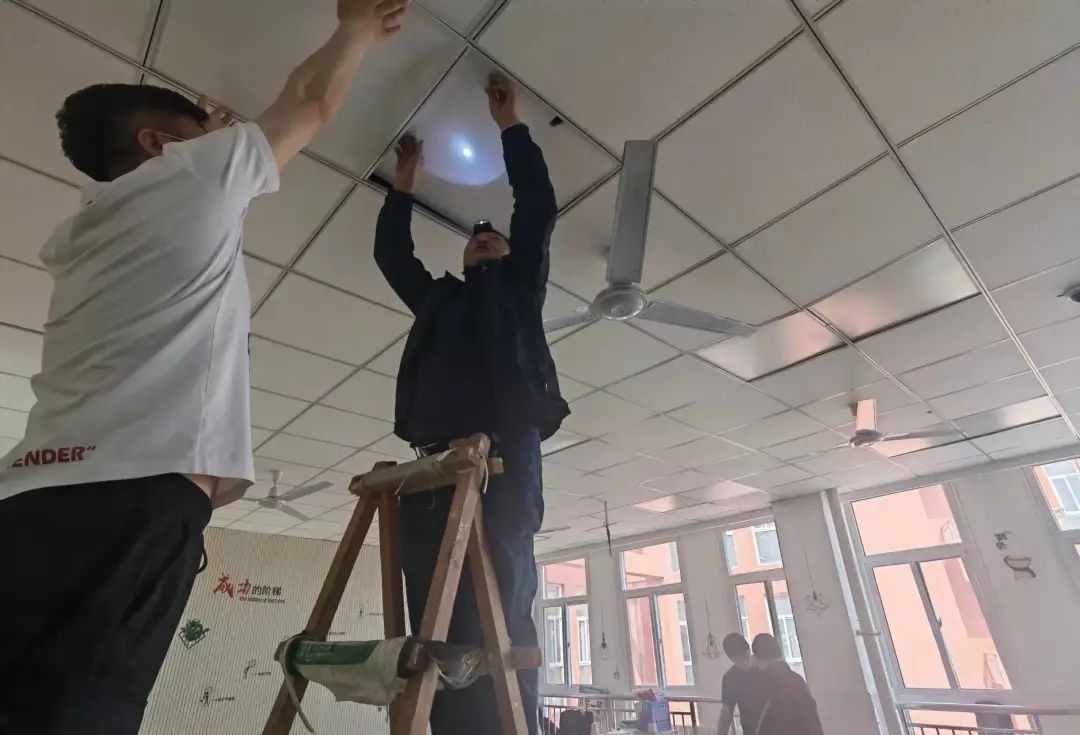 (檢修教室硬件設(shè)備) 夏季學(xué)期已經(jīng)結(jié)束,校園里已經(jīng)沒有了往日里的人來人往,但學(xué)校后勤工作卻從未停止過。在積極建設(shè)完善校區(qū)硬件設(shè)備的同時(shí),排查隱患,安全檢修也是后勤工作的重中之重。