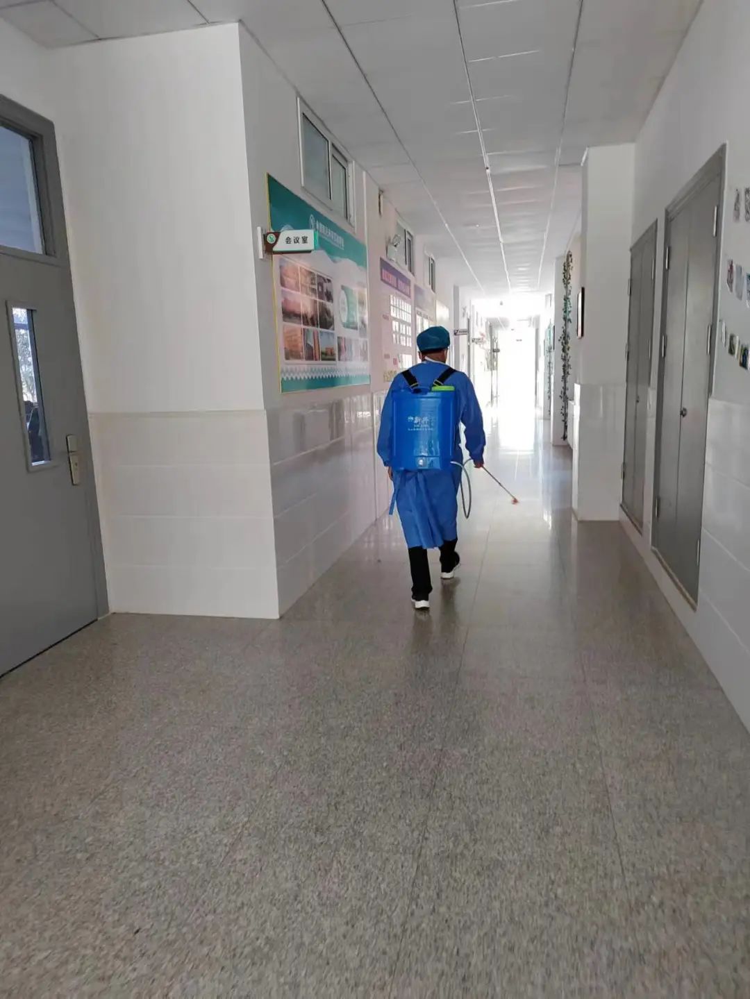 開學(xué)日還沒明確,請(qǐng)靜靜等待,而不容等待的是學(xué)校的各項(xiàng)防護(hù)工作,近日以來,我校嚴(yán)格按照疫情防控相關(guān)規(guī)定,積極開展校園清潔、消毒、健康監(jiān)測(cè)等工作,為同學(xué)們重返校園做好充分準(zhǔn)備。 潔凈校園全方位消毒