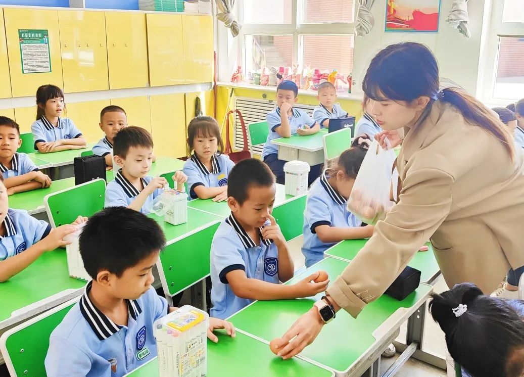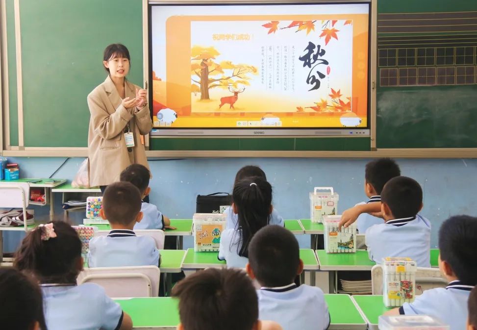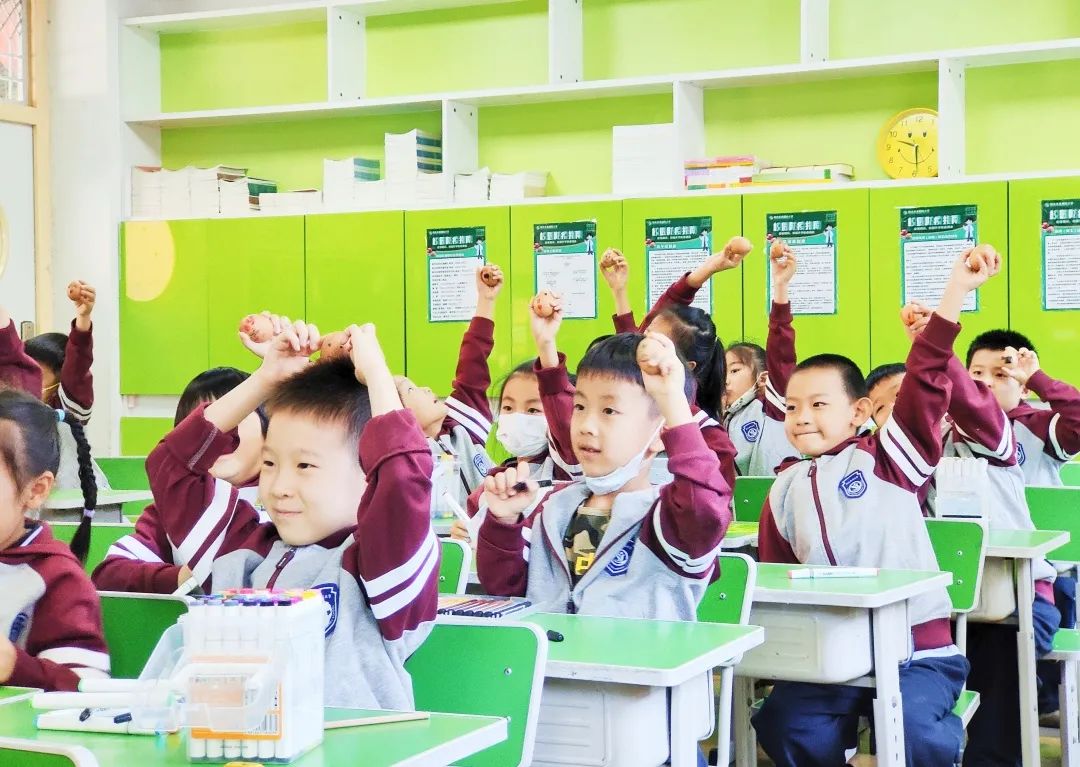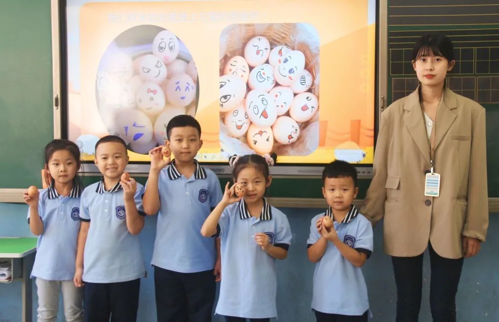 豎蛋大賽在一(1)班和一(2)班拉開帷幕,各班同學(xué)在美術(shù)老師李玉潔的指導(dǎo)下,繪制出精美的“秋分蛋”。