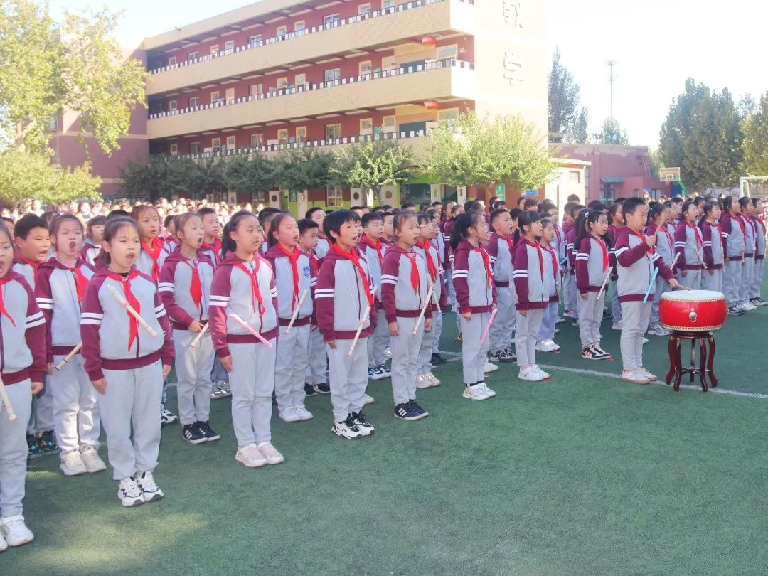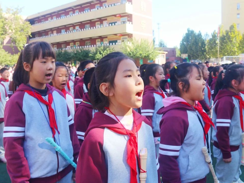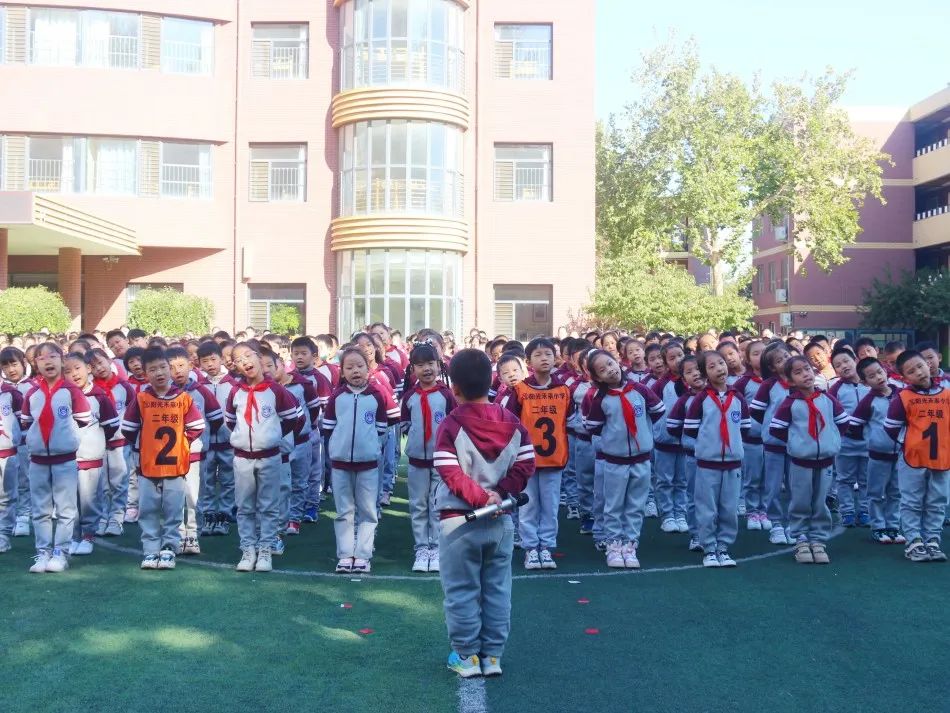 04 四 年 級 四年級同學們站立筆直如一顆顆茁壯生長的小松樹,誦讀了《觀滄海》和《飲酒》,引起師生們陣陣喝彩。