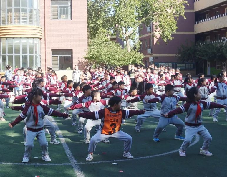 為了豐富學生的校園體育活動,提高提體育教學質量的質量,進一步規(guī)范學生的行為習慣,增強班級集體榮譽感和班級凝聚力,激發(fā)學生的創(chuàng)造力、增強團結協(xié)作意識、提高心理素質等,更有效的展示我校學生風采,展示班級團結協(xié)作,努力進取的精神面貌,陽光未來小學體育展示活動正如火如荼地進行著,讓我們到操場,一覽盛況吧! 一年級—旭日東升武術操
