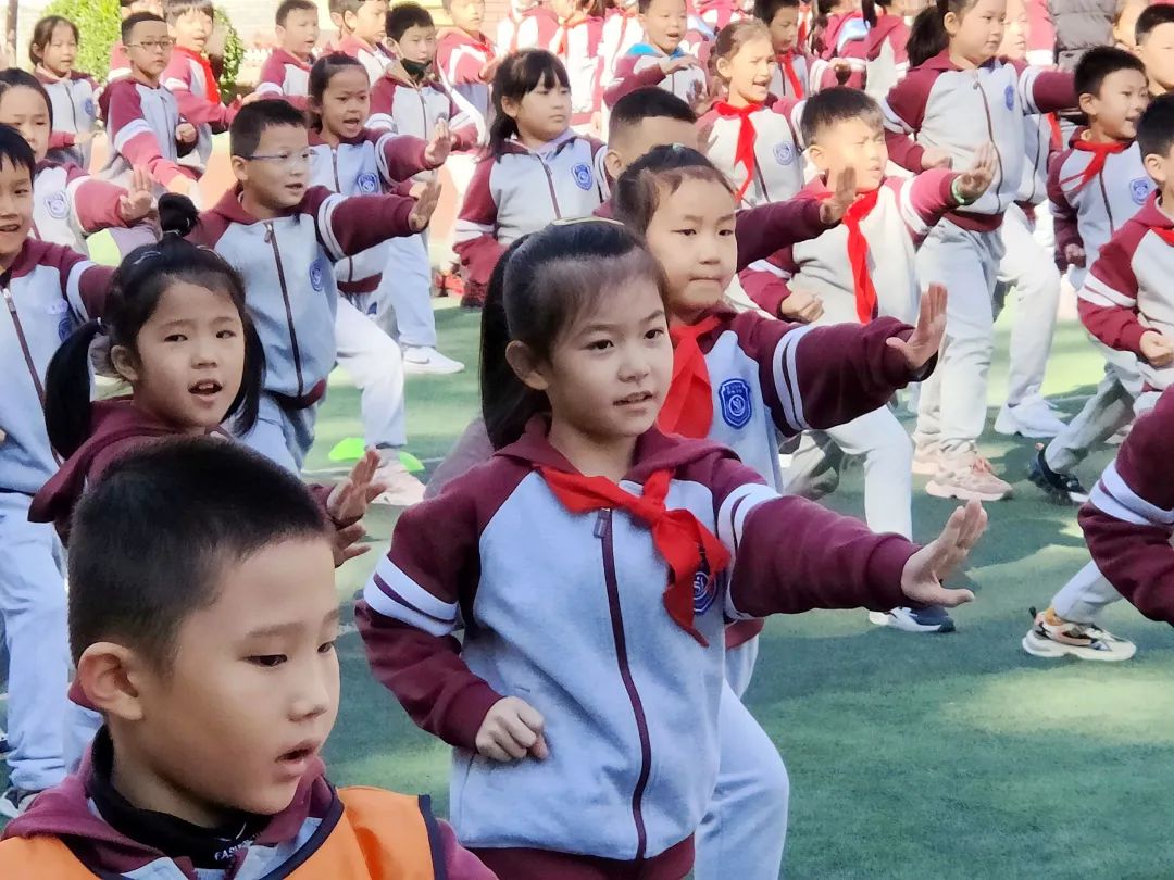 《全國中小學生系列旭日東升武術健身操》是以中國武術為主要內容,以廣播操為表現(xiàn)形式,以傳承武術和中國傳統(tǒng)文化、弘揚和培育民族精神為指導思想,達到豐富小學生大課間操內容、增強我國青少年身心健康為目的的體育鍛煉形式。一年級的孩子們擺臂有力,動作到位,節(jié)拍統(tǒng)一,為我們展示了精彩的武術操。
