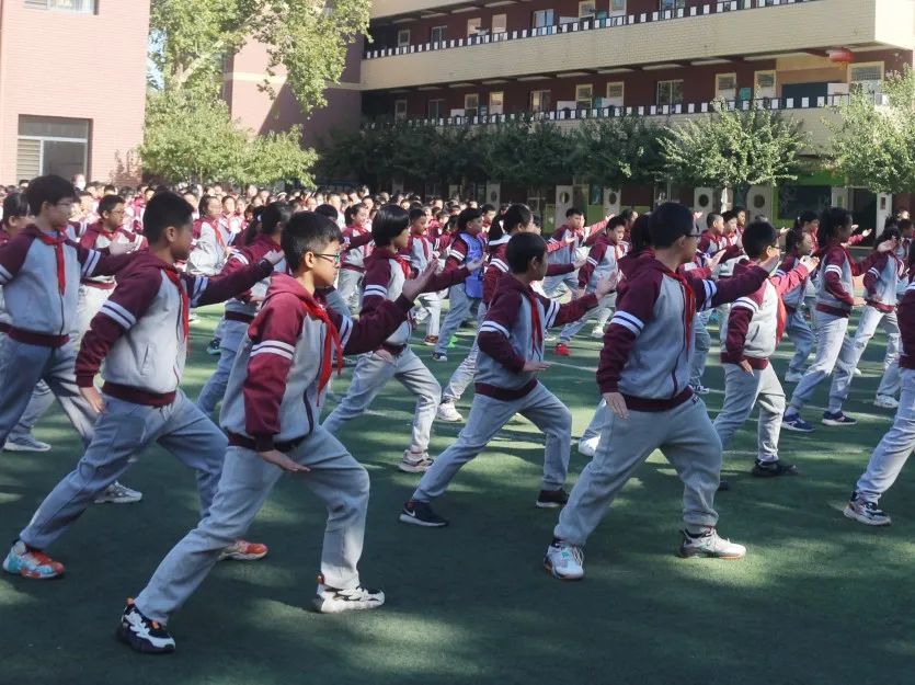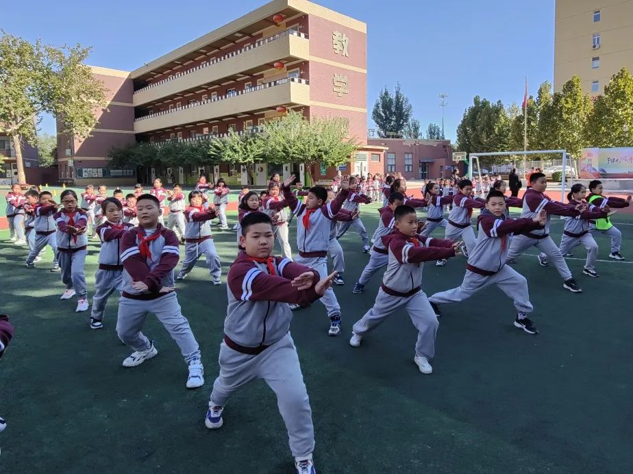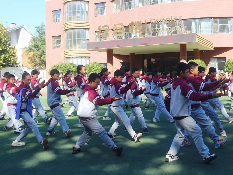 少年規(guī)定拳是一種適應于比賽的標準套路,在傳統(tǒng)長拳的基礎上創(chuàng)編而成,非常適合四年級孩子們練習,他們陽光自信,積極向上,整齊有力的動作讓全校師生贊不絕口。