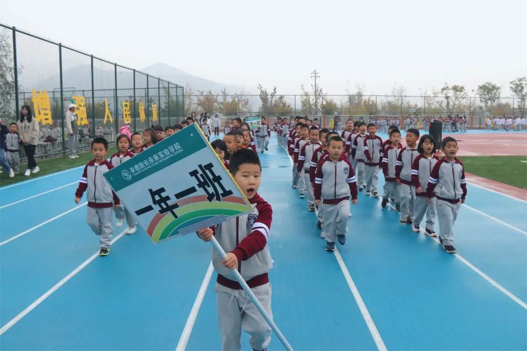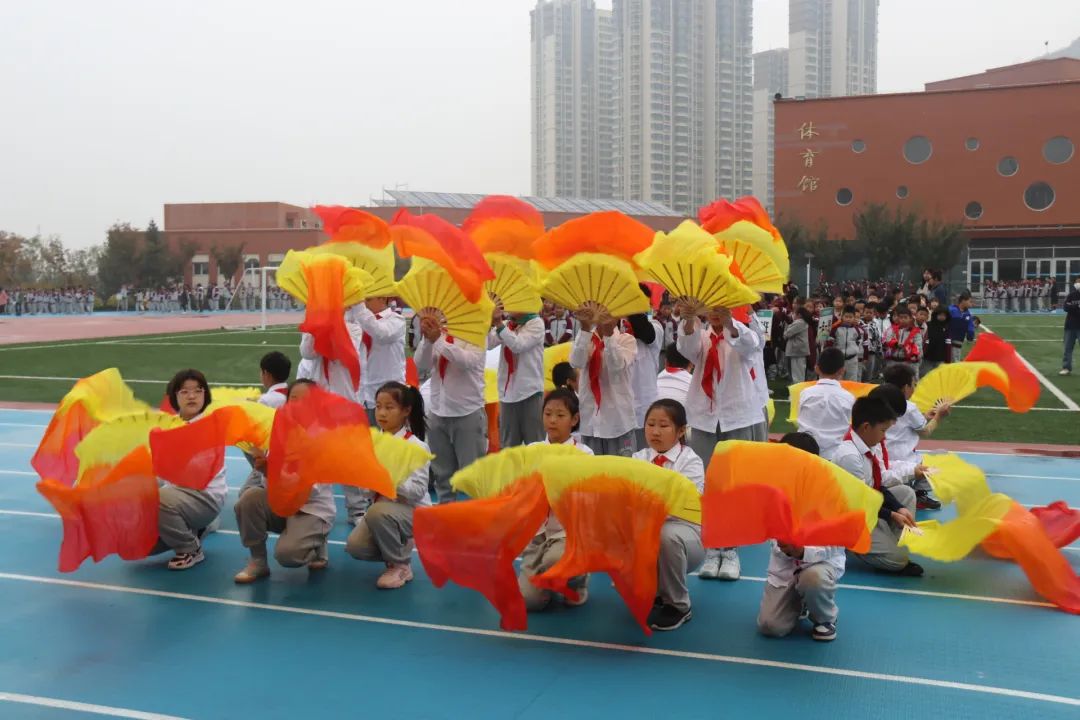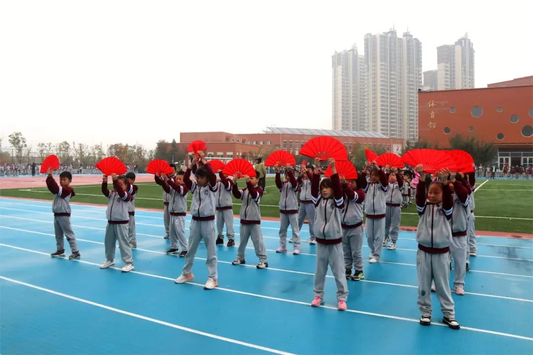 翩翩少年乘風(fēng)而至 伴隨著雄壯激昂的《運(yùn)動(dòng)員進(jìn)行曲》,小學(xué)、初中方隊(duì)依次經(jīng)過(guò)主席臺(tái)前進(jìn)行創(chuàng)意表演。每個(gè)班級(jí)方隊(duì)各具特色,一揮一舞之間,盡顯少年活力!