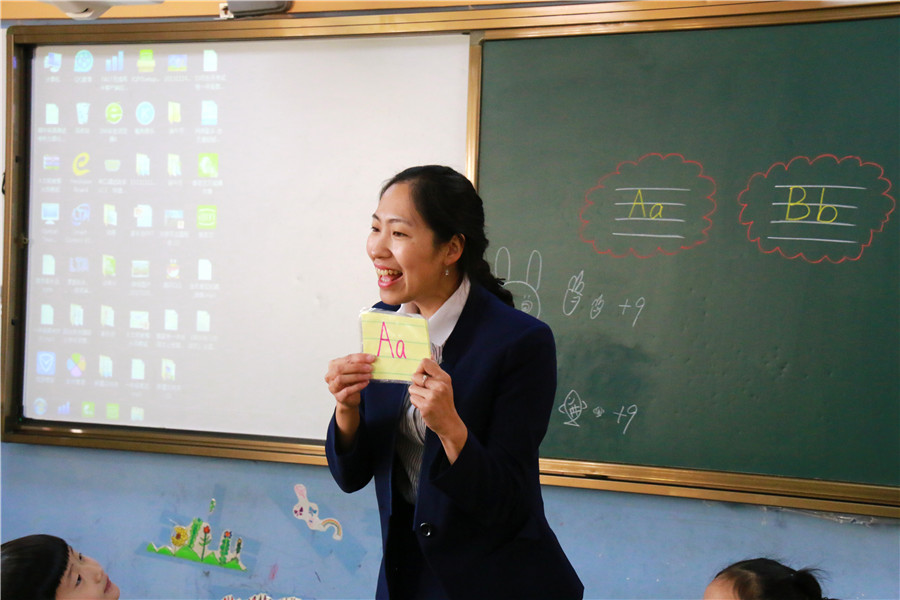 每一個清晨來到教室,寶貝們會熱情地揮著小手用英文向我打招呼,這種被童真包圍是幸福的。
