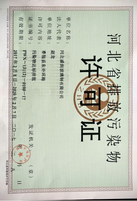2017年2月8日河北盛潤(rùn)玻璃鋼有限公司取得河北省排放污染物許可證